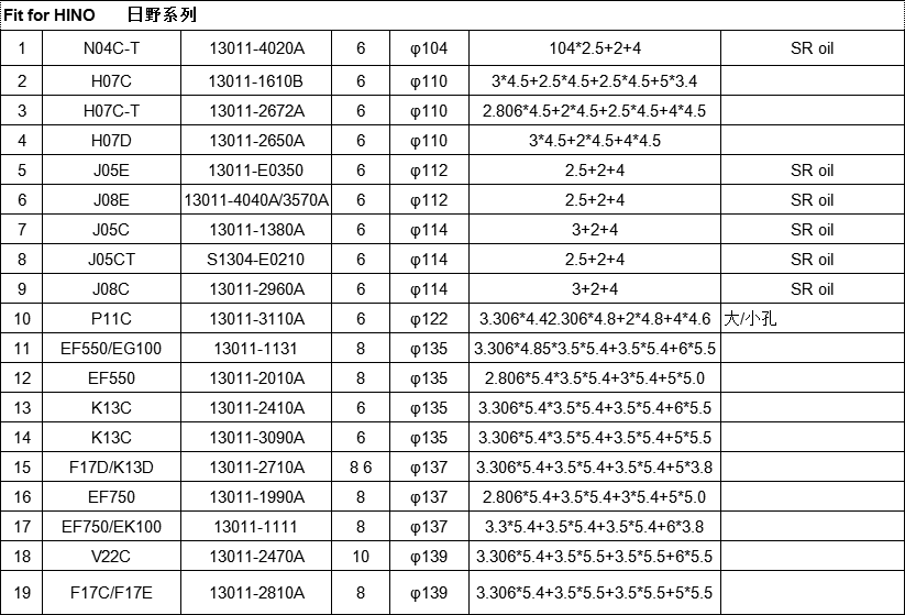 Hino J08E series belongs to 6-cylinder in-line diesel engine, with cylinder diameter of 112mm, stroke of 130mm and cylinder center distance of 126mm.It has been used in large and medium-sized buses, city buses, medium/heavy trucks, cement mixer, etc